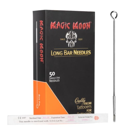 All long bar needles, regardless of cone type, are made of the same high quality steel and are subject to the strictest quality controls. Checked on site during and after production. Another quality control then takes place in Germany. This allows us to achieve the greatest possible efficiency with the needles to be used. Different tattoo motifs and techniques require different arrangements and types of needles.