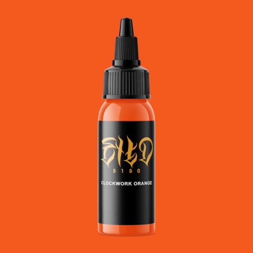 A Clockwork Orange is a 5150 Colors pigment-based neon orange paint that goes very well with bowler hats and canes.
