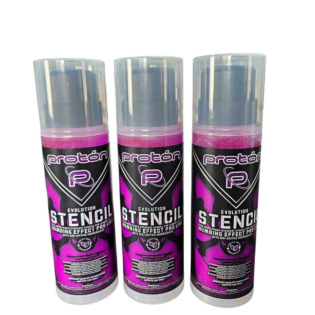 Evolution - Proton Stencil Professional Primer is the latest advancement in the Proton range, developed to offer the highest bonding power ever achieved in tattoo stencils. With over a year of research in our R&D departments, this unique formulation includes naturally derived bio-active ingredients that provide a numbing effect, creating an exceptional experience and significantly reducing pain throughout the session when used in conjunction with the rest of the Evolution range.