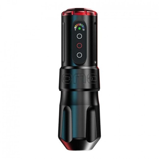 The One by FK Irons is a high quality cordless tattoo machine suitable for tattoo artists at all stages of their career. Powered by a rechargeable battery instead of a battery to reduce the weight of the machine and still provide the same power. Two rechargeable batteries and a charging station are included.