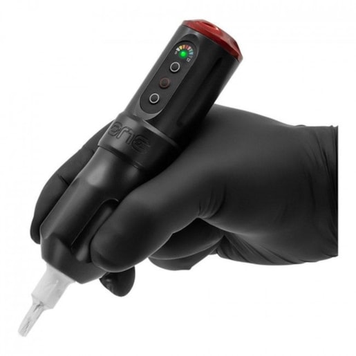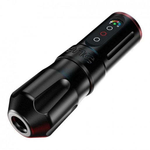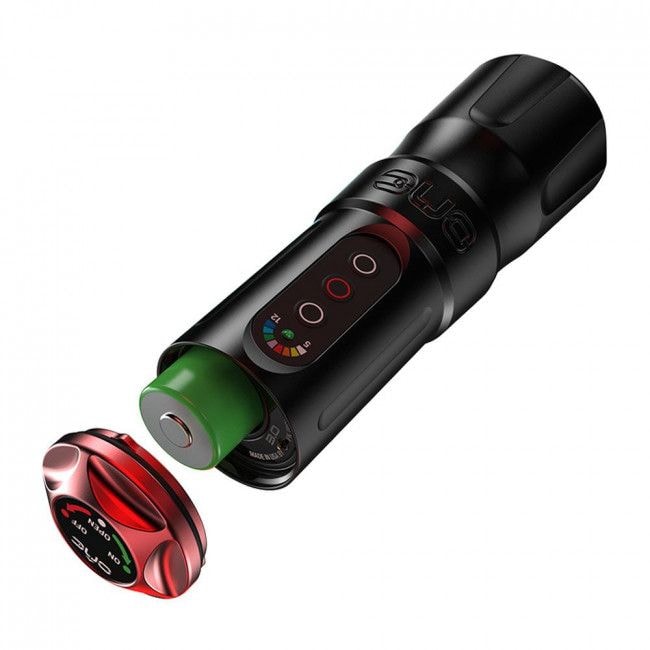 Easy to use Ergonomic design with lightweight aluminum housing Powered by a Panasonic 18500A rechargeable battery Quick-Twist Battery Door and Power Cut LED indicators showing voltage level Super quiet motor with minimal vibration Click-grip ratchet system lets you adjust needle depth on the fly Compatible with all cartridge modules
