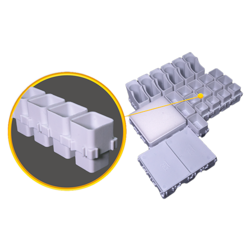 Gray plastic insert Item dimensions: 73 x 19 x 24 mm Item weight: 6.7 g Reversible 4 cavities, 10 ml and 14 ml Box dimensions: 224 x 80 x 105 mm Box weight: 467 g
