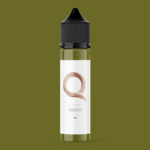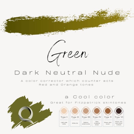 Green is a dark moss green pigment with yellow undertones intended as a camouflage and color corrector. It is formulated to counteract red and orange tones. Our Green is used to counteract and neutralize red, peach and /or pink tones in the skin. When green is applied to areas with red undertones, it helps to cancel out or neutralize the redness. For example, if someone has red or pink undertones in their lips or if there is residual redness from a previous permanent makeup procedure, our Green corrector can be used to balance and correct the color.