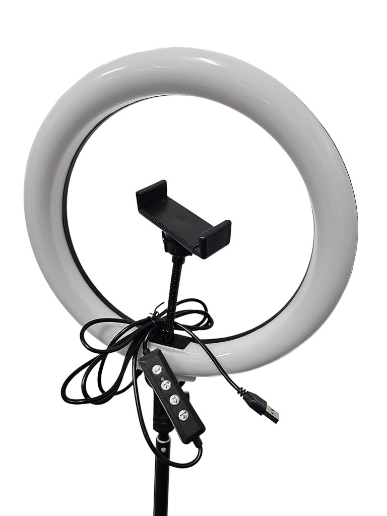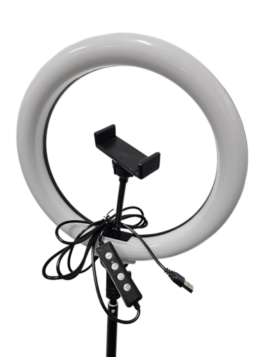 25.4cm ring light with 132.08cm tall tripod and phone holder.