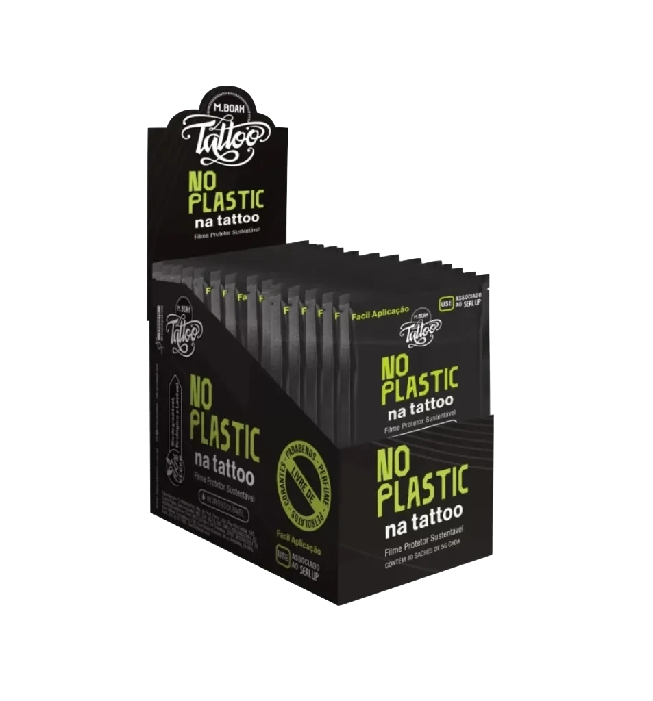 TATTOO IS EVOLVING, AND IT CAN CHANGE THE WORLD. NO PLASTIC is here to put an end to the use of plastic in tattoos. If you want EXTRA protection in addition to SEAL UP, now you will never need to put plastic (non-recyclable and not at all ecological) on your skin in that very important phase that is post tattoo.