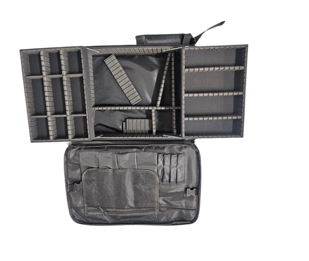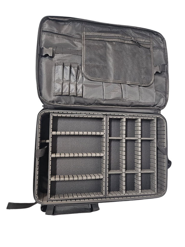 Professional black backpack, with organizer for tattoo equipment and accessories, no battery required.