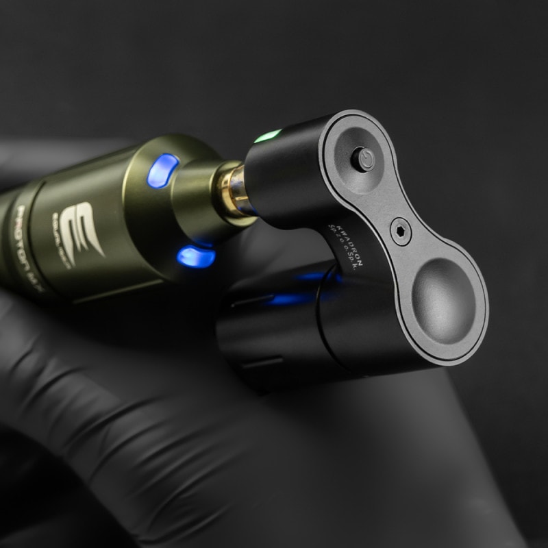 Wireless power supply with RCA connection for Equaliser machines and pen-style machines. Work comfortably without the hassle of cables, with up to 7 hours of battery life on a single charge!