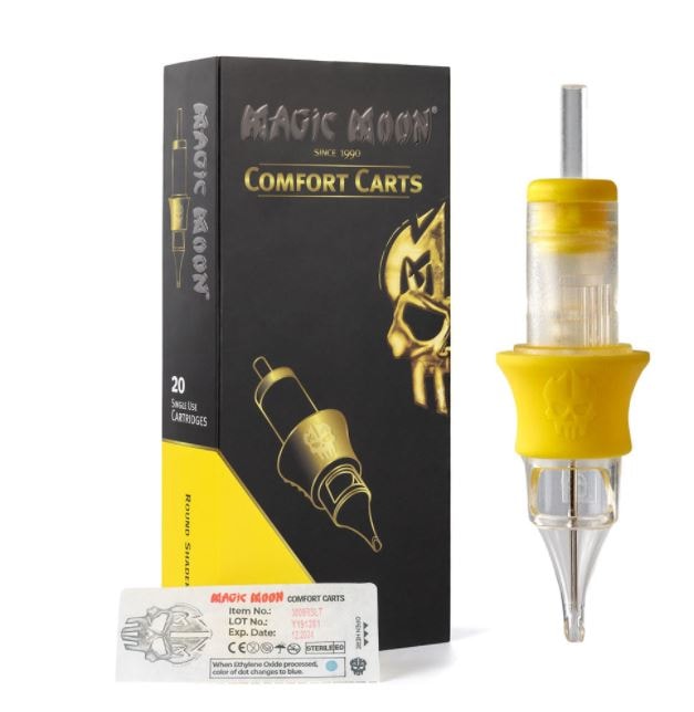 Es su arma de sombreado para todo uso, como sugiere el nombre. Para mezclas extrafinas y suaves en pieles ásperas o sedosas. Un total combinado de cuatro tamaños y siete grupos de agujas en tres puntas diferentes ofrecen todo lo que el arte y los deseos del cliente son. Cada cartucho de sombreado redondo Magic Moon está equipado con un estabilizador de aguja que centra la aguja y permite una transmisión lineal de energía desde la barra de la aguja hasta el cartucho de la aguja.