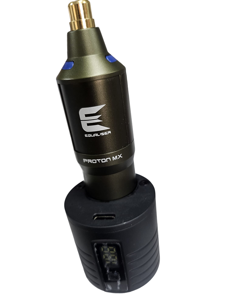 RENDIMIENTO LEGENDARIO, DURABILIDAD INIGUALABLE La Equaliser Proton MX ArmyGreen 3.5 se ha ganado su estatus legendario gracias a su fiabilidad y rendimiento excepcional. Fabricada con materiales de primera calidad y diseñada para la precisión y la ergonomía, satisface las más altas exigencias de los artistas del tatuaje. Con un potente motor de 5 vatios y una estructura cuidadosamente diseñada, esta máquina está diseñada para soportar miles de horas de trabajo.