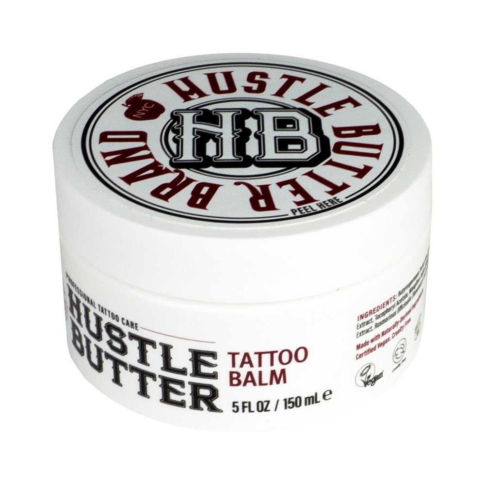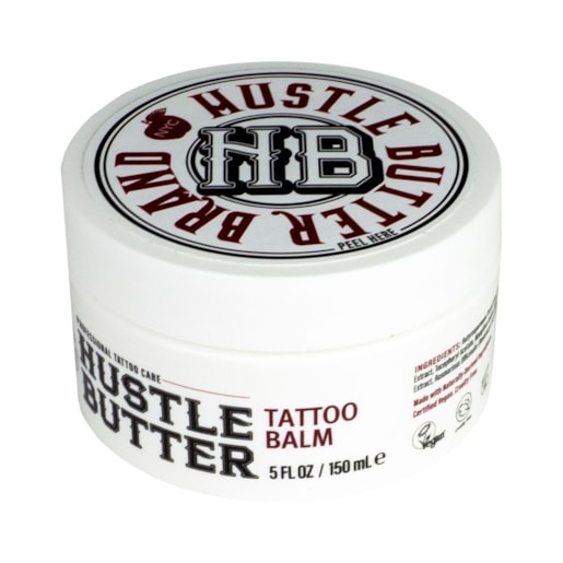 A Hustle Butter Deluxe 150ml é 100% natural e 100% orgânico. A sua fórmula vegan substitui todos os produtos à base de petróleo utilizados para preparar a pele, usado como um lubrificante durante e para cuidar após o processo de tatuagem.