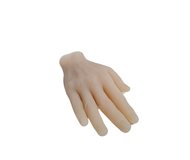 Mão de silicone extremamente detalhada, perfeita para testar novos tamanhos de agulha ou para os formandos darem os primeiros passos de uma forma mais realista, também utilizada por profissionais para desenhar uma peça única para usar no seu estúdio.