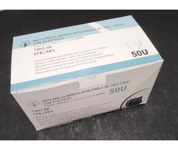 Máscaras Descartáveis Tipo IIR Pretas - 50 Und